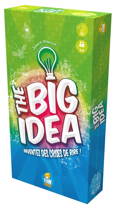 The Big Idea est une réédition, puisque l’original ne nous rajeunit pas, ma bonne dame. Et quelle bonne idée que de rééditer ce petit jeu idiot, en le simplifiant pour en faire un vrai party game qui plus est. J’accorde d’emblée aux ludopathes qu’il s’agit à peine d’un jeu, et plutôt d’une excuse pour raconter n’importe quoi. En effet, dans une veine très télé-achat et inventeurs fous, chacun va constituer, avec des cartes objets et caractéristiques, une invention saugrenue qu’ il va ensuite essayer de vendre aux autres joueurs. Par exemple, un Pape gonflable mentholé. Ou un Poney panoramique doré. Les possibilités sont infinies et il ne tient ensuite qu’à l’imagination de chacun de trouver des arguments plus ou moins cohérents pour défendre son invention. Il se trouve qu’après avoir chacun fait sa petite présentation, on vote pour déterminer le préféré du public, mais ça n’a une importance que très marginale, c’est vraiment un jeu pour raconter n’importe quoi, pas pour essayer de gagner. Pour les anciens, d’ailleurs, c’est la vraie différence avec la première édition, au-delà des belles cartes en couleur, exit le système de mises élaboré, on vote et point. Un jeu à ajouter sans hésiter à votre collection si vous voulez des moments à raconter n’importe quoi.