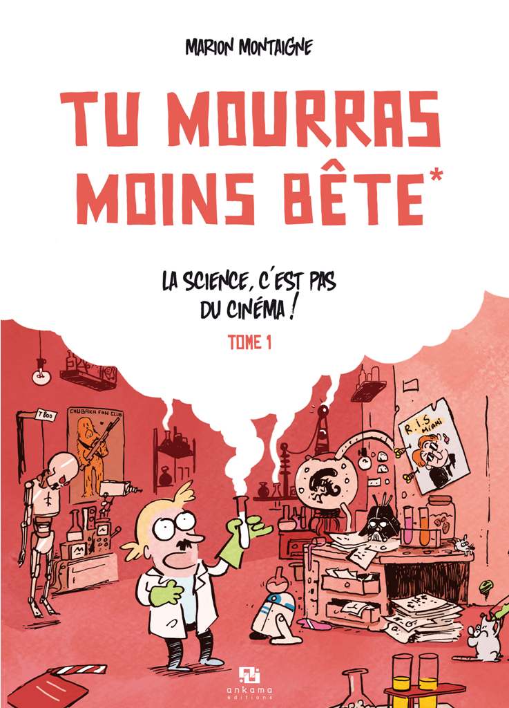 Tu mourras moins bête est un blog BD (http://tumourrasmoinsbete.blogspot.fr/) que j’avais découvert rapidement et qui m’avait laissé une bonne impression, et voilà donc la première compilation papier. La prof Moustache fait de la vulgarisation scientifique, mais pas n’importe comment. Elle part à chaque fois d’une question plus ou moins idiote, mais systématiquement en lien avec une représentation de la science dans les films ou séries télé (ce qui donne trois parties thématiques sur les filsm d’action, la SF et les séries télé). Du coup, déjà, c’est rigolo puisque ça permet d’introduire des personnages connus (et caricaturés d’une manière qui me fait bien souvent rire, tout en restant du dessin simple) et de traiter des invraisemblances, nombreuses, qu’on trouve dans la fiction en général. Et d’autre part, ça fait un point d’entrée parfait pour traiter de sujets très variés et ancrés du coup dans des préoccupations si ce n’est quotidiennes (parce que les impacts de balle et les chutes d’avion, bon, je ne vous souhaite pas que ce soit quotidien) mais tout au moins compréhensibles de manièe très explicites. Partant de là, c’est une lecture très rigolote et agréable, et qui fait un très bon boulot de vulgarisation (en particulier, pour toucher tout ceux et celles qui ont avant tout une culture filmique). Et, oui, j’ai vraiment appris des trucs inattendus, mais, et c’est là la limite en ce qui me concerne, on ne va pas non plus dans beaucoup de détails ou de références. Alors certes, ce n’est pas le propos, et je ne suis pas sur d’être le cœur de cible non plus, mais j’aurais bien aimé que ça aille un peu plus dans le détail du pourquoi d’un certain nombre de cas. Mais oui, je reconnais, je chipote, c’est drôlement bien, z’avez qu’à commencer par aller voir le blog.