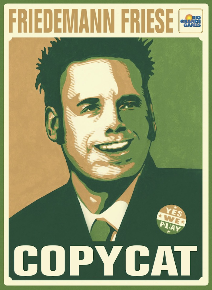 Ils sont trop rare, à mon sens, les auteurs de jeu à se permettre de vraiment déconner tout en faisant de bons jeux. C’est le cas de Friedeman Friese, un bon punk allemand, qui nous propose ici un jeu dont la paternité multiple et plagiaire est pleinement assumée (lisez le dos de la boite, ça mérite) : les mécanismes de trois gros jeux connus mélangés pour faire un nouvaeu jeu. La bonne nouvelle c’est que les mécanismes sont bons et solides et que Friese réussit à les méler de manière extrêmement efficace. Bien sur, mieux vaut les avoir pratiqué avant si on veut prendre en main rapidement ce mélange riche et tendu. Mais ce n’est pas si complexe que ça ne puisse être apprécié par tout joueur de jeux un peu épais. La thématique collée sur tout ça est celle de l’élection poilitique, mais versant réaliste et trash, pas théorique. Donc on magouille. Et l’habillage est drôle, les dessins de Moira faisant référence à de grands moments peu glorieux de politique récente (dont par exemple, Sarkozy accueillant Khaddafi). Le jeu est, qui plus est, rapide et efficace, avec par contre des combinaisons puissantes et brutales qu’il faut découvrir, ce qui donne envie de rejouer.