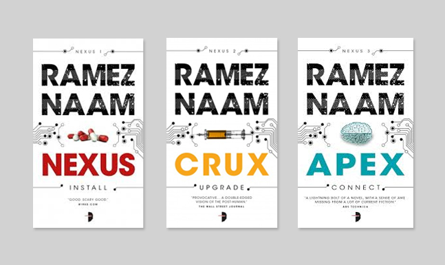 Une grosse trilogie de science-fiction, c’était tout à fait ce qu’il me fallait pour les vacances, et j’en ai eu pour mon argent. Il s’agit de science-fiction proche, la prémisse étant simple mais très riche de conséquences : et si était mis au point un système de nano-éléments s’installant dans le cerveau et sur lesquels il serait possible de faire fonctionner un système d’exploitation connecté au dit cerveau. Je spoile un tout petit peu mais c’est annoncé dès le quatrième de couverture, donc bon. Cette nouveauté va donc provoquer pas mal de paniques, de changements et de basculements vers un monde potentiellement transhumain, voire franchement posthumain. Sur trois tomes, on va même passer en revue de manière assez exhaustive les questions techniques, mais surtout éthiques et politiques autour de ce genre de technologie. Ce qui est un point fort d’ailleurs, à mon sens, de cette trilogie : je ne suis pas nécessairement d’accord avec l’auteur, au final, mais je trouve qu’il fait un franchement bon boulot de passer en revue et confronter les différents points de vue et dilemmes autour du trans et posthumanisme, avec finesse et honnêteté. Voilà pour la thématique de fond, qui est quand même pas mal importante. Pour la forme, maintenant, on est plutôt dans un format thriller, avec pas mal de scènes d’action et un rythme franchement soutenu et plein de suspense dans tous les sens. Du coup, oui, ça se lit vite et c’est dificile de le lacher. Les personnages sont globalement bien construits et assez facilement attachants, en évitant de tomber trop dans les stéréotypes, même si on y échappe pas toujours complètement. Un point fort dans la construction du récit est à mon sens sa dimension globale, c’est à dire en intégrant des cultures différentes, en particulier asiatiques, et en ne centrant pas le récit et les enjeux sur une dimension spécifiquement amréicaine. Ce qui est d’une part beaucoup plus crédible, et d’autre part beaucoup plus riche en termes de rapports à ces possibles technologies et à leurs usages (en particulier, la place faite à la méditation et au bouddhisme sont particulièrement bien vues et intéressantes). L’ensemble est donc à la fois une réflexion, dans les meilleures traditions de la science-fiction, sur les impacts possibles de ce type de technologie et de modification de l’humain, et à la fois une histoire prenante, tendue et dynamique dont on suit les péripéties avec joie.
