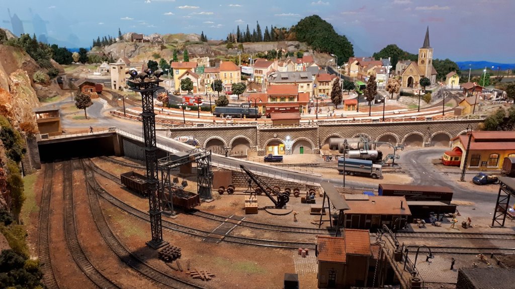 Au hasard des vacances et des jours de pluie, on se lance parfois dans des visites qu’on n’aurait pas faites autrement. A Chatillon sur chalaronne, donc, il y a un petit musée : 200 m² de dioramas de train miniature, montés par un passionné dont c’est le projet de retraite. Et je ne m’attendais pas à ce que ça nous occupe et nous amuse autant, tous âges confondus. C’est très dense et foisonnant de détails : certains simplement illustratifs et variés (des trains, oui, mais aussi des lieux connus, des scènes de vie quotidienne); d’autres clins d’œil (scènes de films, de tournages, invasion d’aliens) et d’autres plus destinés aux adultes (blagues politiques, dont la prison et le cochon Dsk, mais aussi le rond-point de Gilles et John). Du coup, on cherche et on scrute dans tous les recoins, et ça le fait. Et tout bouge. Et on alterne même entre jour et nuit. Ça marche bien pour les petits enfants mais tout le monde se retrouve comme un petit enfant au final. Et le côté fait maison par un passionné ajoute une dimension humaine et touchante. On y a passé une heure et demie, pour 200 m² c’est remarquable.