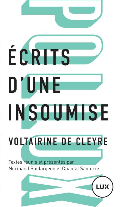 Voltairine de Cleyre est raisonnablement inconnue et c’est bien regrettable. Anarchiste, et féministe, états-unienne de la fin du XIXe, elle était décrite par Emma Goldman comme la plus douée et la plus brillante de sa génération. En la lisant, on n’a pas envie de contredire. Voltairine de Cleyre écrit bien mais elle écrit surtout avec une conviction et une acuité remarquables. Elle écrit sur l’anarchisme avec brio et un enthousiasme contagieux, et sans verser dans des querelles intestines ou des débats de spécialistes. Tout en restant solide et documentée. Elle écrit aussi sur les grands enjeux politiques de son temps, et ça a été pour moi un apport bienvenu et enrichissant. Et enfin elle écrit sur la question de la femme, pour reprendre la formule de l’époque, avec force et avec là encore une acuité étonnante. On y trouve des analyses et argumentaires non seulement d’actualité mais qui sont très proches de descriptions de sciences sociales contemporaines sur ce sujet. Et dans ces textes, peut-être même plus sur les questions politiques, elle assume un point de vue situé et parle d’elle. Ce qui renforce son propos mais donne également une image d’elle que je ne peux que trouver admirable. Une femme, et des textes, qui mériteraient tellement une place dans nos manuels d’histoire (on peut rêver, non ?). Une chouette lecture, un peu spécialisée : je suis content que Baillargeon et Santerre aient fait ce boulot d’exhumation, ça mérite. Et : ça finit en beauté avec quelques poèmes, pleins de colère et de joie.