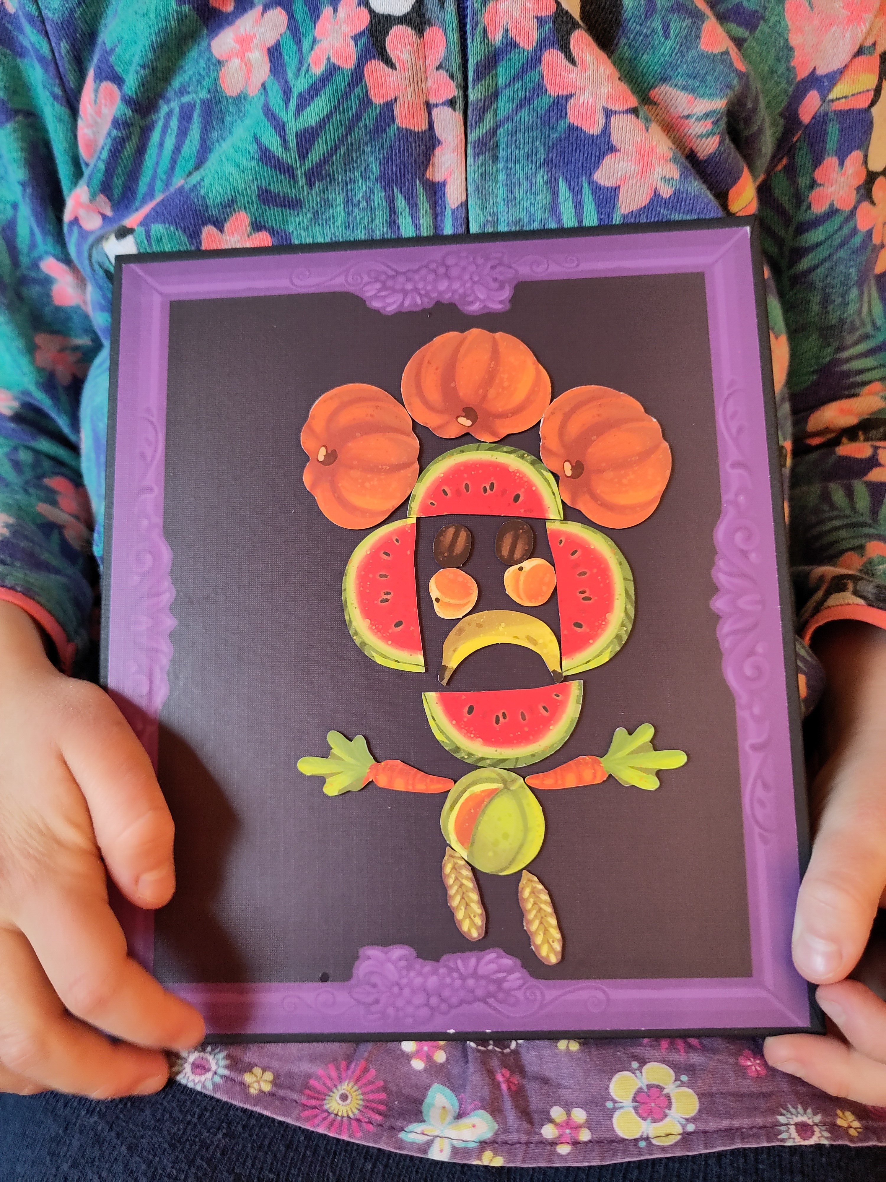 Le principe est dans le titre : il s’agit de dessiner en juxtaposant fruits, légumes et fleurs. Ce qui est drôle, joli et amusant. Le matériel est joli et de qualité, ce qui est important pour un jeu de ce type : des supports solides et des fruits et légumes aimantés aux illustrations très arcimboldiennes. Chacun-e son ardoise, les aimants au milieu, on pioche un thème (assemblé avec un mot et un adjectif) et chacun-e compose son tableau. Sans se presser (même si les fans de compétition pourront se satisfaire de se tirer la bourre pour prendre les aimants souhaités avant les autres). Une fois les tableaux terminés, chacun-e présente le sien en quelques mots et on vote pour son préféré. Les résultats sont toujours jolis, parfois étranges et souvent poétiques. Ce qui en fait un jeu basé d’abord sur le plaisir d’être créatif-ve de manière légère et détendue. C’est tout à fait plaisant et tranquille, et ça offre un petit moment de partage inventif et inattendu. La dimension créative et le côté très peu compétitif permet aussi de jouer en mélangeant des âges très différents, ce qui est un vrai atout.