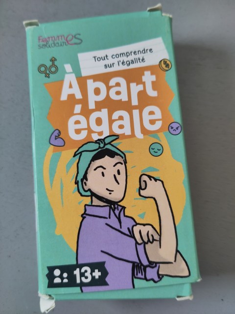 Je continue à suivre du mieux que je peux ce qui sort comme jeux pédagogiques et de sensibilisation, en particulier dans le champ féministe, quitte à aller chercher des jeux qui ne sont pas de diffusion très large. Femmes solidaires a produit ce jeu pour l’usage de son réseau mais il est possible de se le procurer en les contactant. Clarifions une première chose : ceci n’est pas un jeu. En termes de forme, ce sont des cartes et ça peut donner envie plus facilement de s’en saisir, d’autant que c’est illustré de manière agréable et claire. En termes d’utilisation, ce sont des questions que l’on soumet au débat en groupe. Des questions qui sont pour la plus grande partie des questions de connaissance (C’est quoi le 8 Mars ? C’est quoi le harcèlement ? etc) et pour une petite partie des questions de point de vue et de valeurs (La violence ne doit pas faire la loi. Egalité fille/garçon, réel ou irréel ?). Du coup, ce n’est pas un jeu, mais c’est un support de discussion et d’échanges, sans ceci dit de vrai moteur, ce qui fait que ça marche avec des groupes qui ont envie dès le départ, et qui ont un peu de trucs à dire. Ou alors c’est vraiment une excuse pour faire de la formation de manière un peu interactive. Ce qui sont des usages qui me vont, mais que je ne trouve pas tellement ambitieux en termes de pédagogie. Après, je dis ça en sachant bien que je suis un peu beaucoup exigeant de ce point de vue. Et pour le contenu, je trouve que ça fait un mémo sympathique et compact sur pleins de sujets autour des relations et de l’égalité femmes/hommes (avec une entrée prévention, hein) et j’ai même appris quelques trucs.