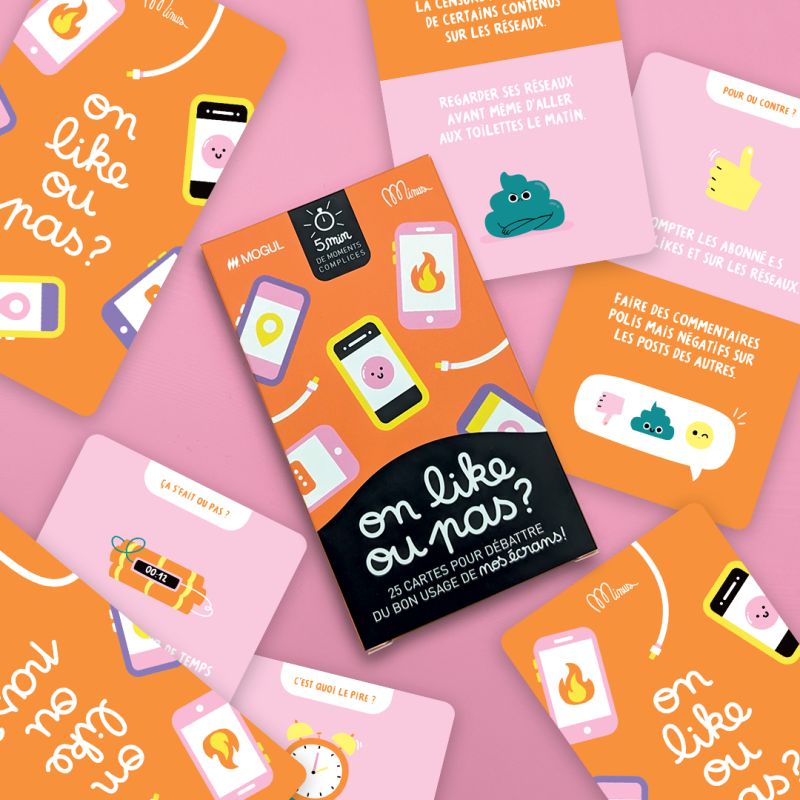 Je suis fan des petits jeux pour discuter des éditions Minus, que j’utilise tant et plus en animation pour mes temps d’inclusion (avec une consigne de type braséro québecois). Alors quand de nouveaux paquets de cartes sortent, je regarde ce dont il s’agit. Récemment, trois sorties : On like ou pas, Au pied des pistes et C’est quoi le pire. Dans les trois cas, les cartes mélangent des intitulés de questions différents, mais tous issus des paquets originaux (pour ou contre, tu préfères, ça s’fait ou pas, etc.). C’est quoi le pire propose donc simplement des cartes thématisées vaguement, et plutôt enfantines, ce qui m’intéresse peu. On like ou pas, par contre, est basé sur une vraie thématique : celle du rapport aux écrans et au numérique. Il permet donc d’ouvrir la discussion de manière légère sur des questions variées autour des usages, risques, intérêts et plaisirs de la vie numérique, en particulier avec les plus jeunes mais honnêtement je pense que ça fonctionne avec tout le monde. C’est un sujet important pour beaucoup d’éducateurices et de parent-es, je pense donc que c’est une ressource sympa et clé en main pour initier des échanges, notamment groupes mixtes ou au sein d’une famille. Si vous bossez dans la médiation numérique, ça me semble un bon point de départ (même si je ne doute pas que des yeux plus affutés que les miens auront à redire à certaines formulations et en entrées). Et pour finir ce tour d’horizon, celui qui m’a fait bien rigoler mais dont je n’aurais aucun usage : Au pied des pistes… dont le thème est : je suis de classe sup et je vais au ski. Non, franchement, les questions que j’ai vu sont tellement référencées pour cette catégorie sociale là que ça ressemble un peu à une blague quand on en est pas. Donc : soit vous êtes dans le profil, et ça peut fonctionner sympathiquement, soit vous le prenez pour l’aspect découverte culturelle 😉