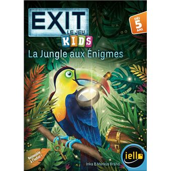 Pour celles et ceux qui ne connaissent pas la gamme de jeux Exit : c’est le concurrent direct de Unlock. Pour celles et ceux qui ne connaissent pas Unlock non plus : ce sont des jeux de société, coopératifs, dans lesquels on résout une série d’énigmes. Dans l’esprit : un escape game sous forme de jeu de cartes. Ici, c’est la version petits enfants, c’est-à-dire à partir de cinq ans. L’excuse immersive est anecdotique : on en retiendra qu’on est dans la jungle et qu’on va gagner des coffres au trésor. Et honnêtement, ça suffit tout à fait. Pour celà, il va falloir résoudre six énigmes. Chaque énigme fonctionne selon une logique différente, avec en commun une roue de codage qui permet une auto-correction de chaque énigme. Les six registres fonctionnent très bien, avec des styles différents (reconnaissance de formes, observation, topologie, déduction, logique) : tous sont adaptés à l’âge et la variété permet de ne pas avoir l’impression de faire la même chose. Une fois les six énigmes résolues, on gagne six coffres : on les retourne et on voit si on a gagné des pièces, des sucettes, des bulles de savon, etc, ce qui n’a l’air de rien mais suffit à valider joyeusement la victoire avec un petit bout de surprise réjouie. Avec six énigmes, on pourrait se dire qu’on ne va pas rejouer souvent mais : pour chaque énigme, il y a six variantes, c’est-à-dire la même règle mais avec un contexte/image/support différent. Donc a minima, on peut jouer six fois, et en vrai comme on ne mémorisera pas les solutions, ça fera plein de permutations. Certes, ça s’épuisera, mais je trouve que la rejouabilité est étonnamment bonne par rapport à plein d’autres jeux de ce type. Une chouette réussite donc, qui peut se jouer seul, en duo avec juste un adulte pour encourager et valider ou en cherchant ensemble (à pas nombreux ceci dit sinon on ne voit rien).
