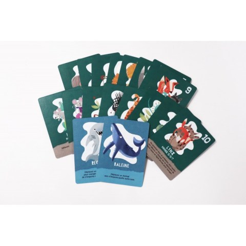 Voilà un moment que je trouve la gamme micro-games intrigante : des jeux de société constitués de dix-huit cartes (et c’est tout) et donc vendu pas cher et faciles à transporter. (Il y a , pour les ancien-nes, un écho cheapass games dans la démarche qui me séduit). Je n’ai pour l’instant eu l’occasion de tester que celui-ci qui se joue en solo. C’est donc plus ou moins un casse-tête. Une série d’animaux (sur une île, virtuellement) qui vont se manger les uns les autres. Chacun ne peut manger que quelques autres, et lorsqu’il le fait, il faut appliquer une règle spéciale (déplacement, contrainte pour la suite, bonus, etc). L’objectif est de gérer l’ordre de prédation pour arriver à vider toute l’île. Ce qui demande de l’anticipation et d’adaptation. Idéalement, on peut tout calculer d’avance, mais je ne suis pas capable de prendre plaisir à ce mode de jeu, donc je joue avec de l’adaptation et pas seulement de l’anticipation et du calcul. Et franchement, ça fonctionne très bien. Comme la configuration de départ est aléatoire, ça se rejoue facilement un certain nombre de fois, pour peu que la logique vous plaise. Moi j’ai bien aimé, et c’est de bonne qualité, mais je ne vais pas m’y acharner. C’est un style de jeu typé qui ne plaira qu’à certain-es (et qui me plairait plus en format informatique, pour de simples raisons d’ergonomie) mais qui est ici tout à fait bien réalisé.