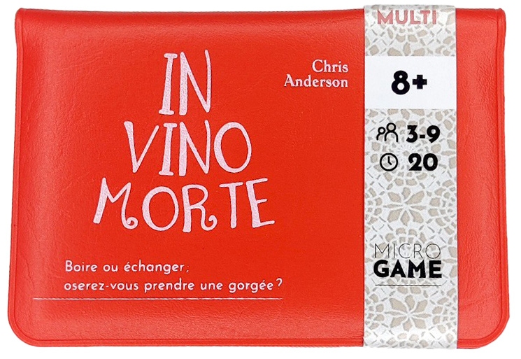 Toujours dans la gamme Microgames, un jeu (en seize cartes) de bluff et d’élimination (dans la grande famille de loup-garou et affiliés). Un jeu simple. Un jeu on ne peut plus simple. Il y a deux cartes : vin ou poison. Celui qui sert pour la manche distribue une carte cachée à chacun-e. A son tour, on boit ou on échange (à l’aveugle) avec un-e autre. On boit du poison : on meurt. Une fois que chacun-e a choisi, on révèle les cartes encore cachées et les empoisonné-es restant meurent. Les survivant-es jouent la manche suivante avec un-e autre serveureuse. Et c’est tout. Et ça marche. Bon, il n’y aura pas une profondeur de jeu dingue, mais à coup de bluff, contre-bluff et rancoeurs, les parties peuvent tout à fait s’enchaîner avec bonheur (et cris et mauvaise foi). C’est une version de cette famille de jeu réduite à sa plus simple expression, avec l’avantage de la simplicité et de la rapidité et l’inconvénient du peu de variation au final. Voire l’impression de s’être fait un peu arnaquer parce que finalement ce sont seize cartes et deux illustrations (sommaires). En vrai, au prix de cette gamme, et étant donné que le jeu marche, je trouve ça honnête. Pas indispensable, parce que vous le referez avec n’importe quel jeu de cartes (noir et rouge suffit par exemple), mais fonctionnel, facile à balader et à proposer.