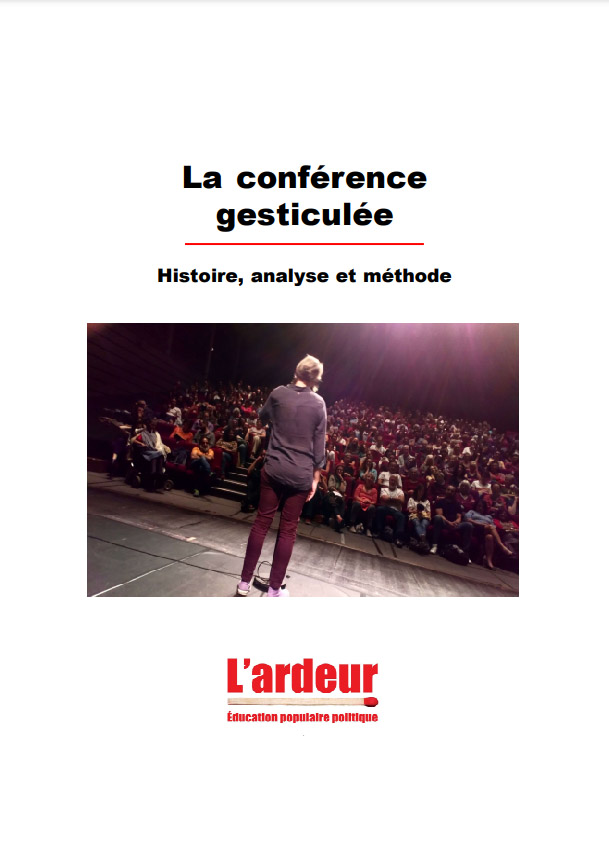 Je n’ai pas fait de conférence gesticulée, ni participé à un stage pour, mais il se trouve que je connais quand même un peu le principe et un peu le réseau en question (par des personnes éminemment recommandables). J’étais donc très curieux de voir ce que donnait ce petit volume de référence sur le sujet. C’est écrit de manière collective par l’équipe de l’ardeur, donc les personnes les mieux placées pour en parler, et avec des apports de gesticulant-es autres (dont Pauline, avec brio), ce qui permet d’ouvrir le regard. L’ambition, réussie, est de faire une synthèse de tout ce qu’il y a à dire d’important sur ce format. On passe donc par les origines, les principes politiques qui font socle, l’ensemble de la méthodologie des stages, les impacts sur les personnes qui montent leur conf, les variantes, les références théoriques, quelques détours, l’état actuel du mouvement, le lien avec les dynamiques d’émancipation, les publics visés et la stratégie. Et c’est bien réjouissant. Bien sur, c’est écrit par des convaincu-es, mais c’est bien le principe et ça ne les empêche pas d’avoir du recul et d’avoir l’ambition d’un regard critique ou au moins objectif. C’est réjouissant de voir ce que produit la démarche, et c’est réjouissant de voir qu’un mouvement peut se créer dans des délais aussi courts et en gardant une ambition politique aussi affirmée. Et c’est réjouissant aussi parce que le choix de mettre à disposition l’ensemble de la méthode et des outils donne des ressources et des idées qui pourront servir ailleurs (et donc à irriguer l’éduc pop en général). Sans surprise, je fais partie du public intéressé, mais je pense que c’est tout à fait partageable plus largement, parce que c’est court et efficace. Bon, l’écriture n’est pas toujours d’un rythme absolument fluide et les grands principes et positionnements politiques sont parfois repris de manière un peu insistante d’une partie sur l’autre, mais ce sont de petites choses qui ne retirent pas grand chose à l’intérêt de l’ensemble. Pour une fois qu’une démarche d’éduc pop est à la fois politique et bien documentée, profitons-en (et essayons de reprendre le principe, peut-être, aussi ;).