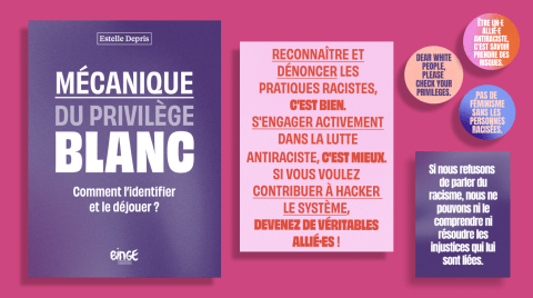 Estelle Despris anime le compte (insta, notamment) intitulé Sansblancderien, avec lequel elle fait un très bon et très important travail de pédagogie et de militantisme anti-racste. De cette expérience et de ce travail massif de recherches et de reformulation, elle a fait ce livre. Aborder la question du racisme par le prisme des privilèges est un choix fort et que je trouve vraiment intéressant, parce qu’il force à considérer la dimension systémique et les logiques d’oppression et d’exploitation. Et qu’il parle donc en priorité aux blanc-hes, qui sont celleux qui ont le plus besoin de travailler ces sujets, et qui sont aussi en position d’avoit un impact considérable si elleux se positonnent en tant qu’allié-es. Avec ce prisme, Estelle Despris passe en revue de très nombreuses dimensions du privilège blanc (et des mécaniques racistes donc), avec à chaque fois un chapitre court et rédigé de manière très agréable et très efficace, suivi d’un tuto, d’un résumé très réussi puis de ressources biblio. C’est un format que je trouve parfaitement adapté, c’est digeste, c’est bien découpé avec une mise en page aérée et qui met en lumière les éléments principaux. Elle se décrit elle-même comme positionnée dans de l’anti-racisme libéral, centré sur les représentations et leur évolution, et elle fait ça très bien, tout en permettant aussi de comprendre ce qu’est un positionnement de faux anti-racisme et ce qu’est un positionnement de lutte radicale. Ce qui permet de politiser efficacement les différentes approches et enjeux. Donc vraiment du très bon boulot de pédagogie, qui m’a profité à plusieurs titres (parce que même si j’ai déjà bossé la question, je ne l’avais jamais creusé par la question de mes privilèges de blanc) et que je vais utiliser et conseiller également.