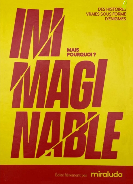 Le plaisir de découvrir une anecdote historique inattendue et vraiment bizarre : voilà le seul moteur d’Inimaginable. Et c’est un bon moteur, vraiment, pour beaucoup de gens, dont moi. Le mécanisme de jeu est simple et connu : une personne lit l’anecdote et pose la question.énigme qui sert de point d’entrée, puis les autres la questionne, sachant qu’elle ne répond que oui ou non, jusqu’à trouver une explication suffisamment proche de la réalité. C’est coopératif, c’est intriguant et c’est ultra facile à mettre en œuvre. Pour que ça marche, il fallait des anecdotes motivantes et vraiment curieuses, et des formulations efficaces. Globalement, c’est le cas, et ça en fait un jeu qui fonctionne tout à fait. Avec comme limites : si on connaît les anecdotes, c’est mort (et si les ressources culturelles sont très hétérogènes ça peut être un peu frustrant) et on ne peut pas rejouer avec les anecdotes déjà connues.